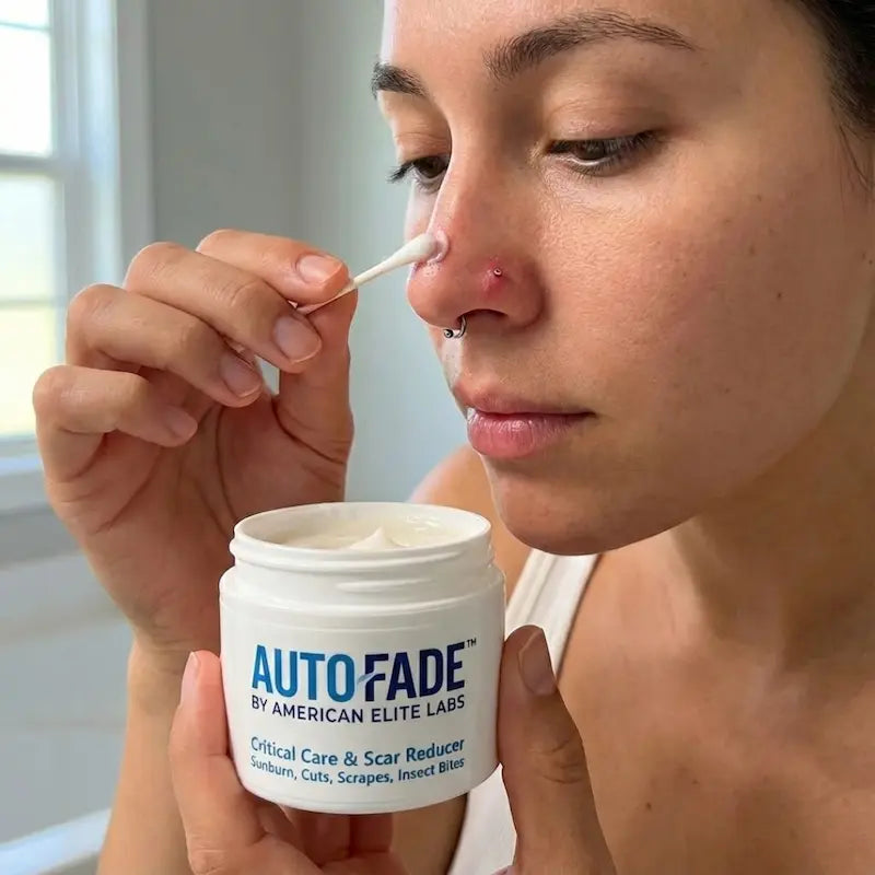 Skincare concerns: Nostril piercing irritation, visible piercing bumps, redness, sensitivity, and skin recovering from mechanical irritation.